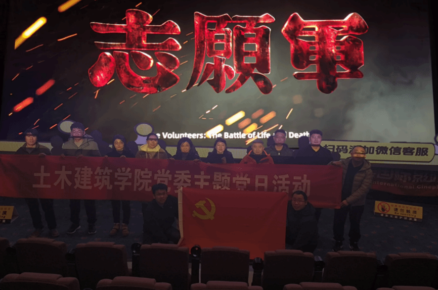 为深入推进党史学习教育常态化长效化,弘扬伟大抗美援朝精神,激励广大教师党员坚守教育报国初心担当立德树人使命,近日,建工系、智能建造系、道桥系教支部联合组织全体教工党员,共同开展了“观看红色电影,汲取奋进力量”主题党日活动,集体观看了爱国主义影片《志愿军:存亡之战》。