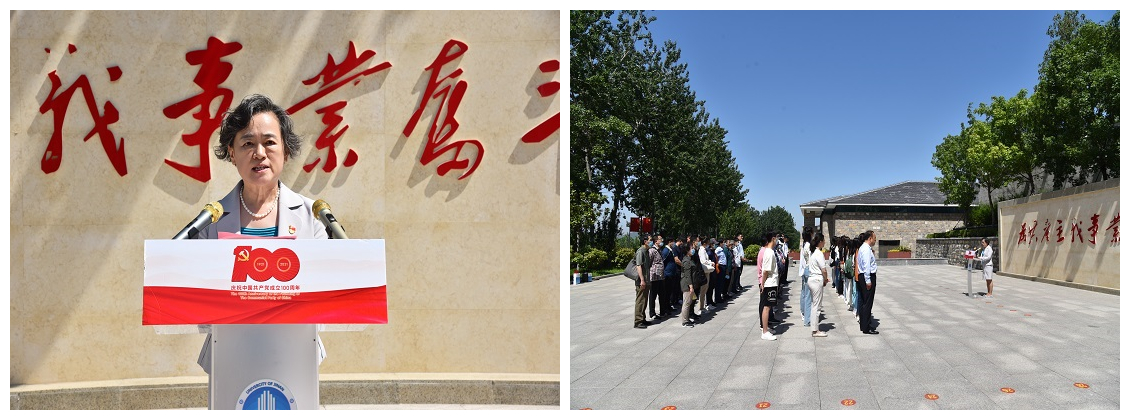 师生党员赴济南大峰山党性教育基地开展党史学习教育,学校党委副书记张硕秋在基地为师生党员上了一堂党课。