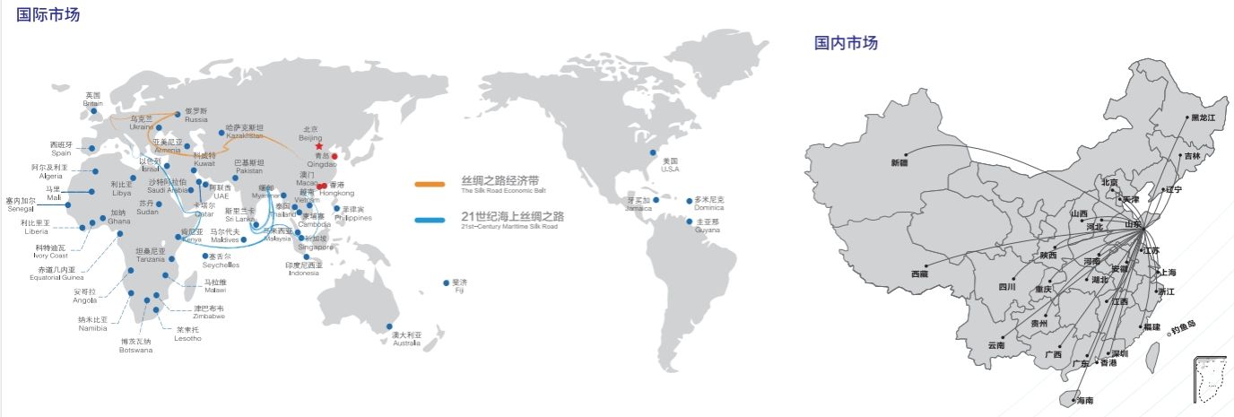 总部位于美丽青岛,以青岛市、埠外(国内)、海外“三分”业务布局,在国内20多个省/市/自治区,设有300余家分子公司,实现了从本土化入手向区域化拓展的经营格局。