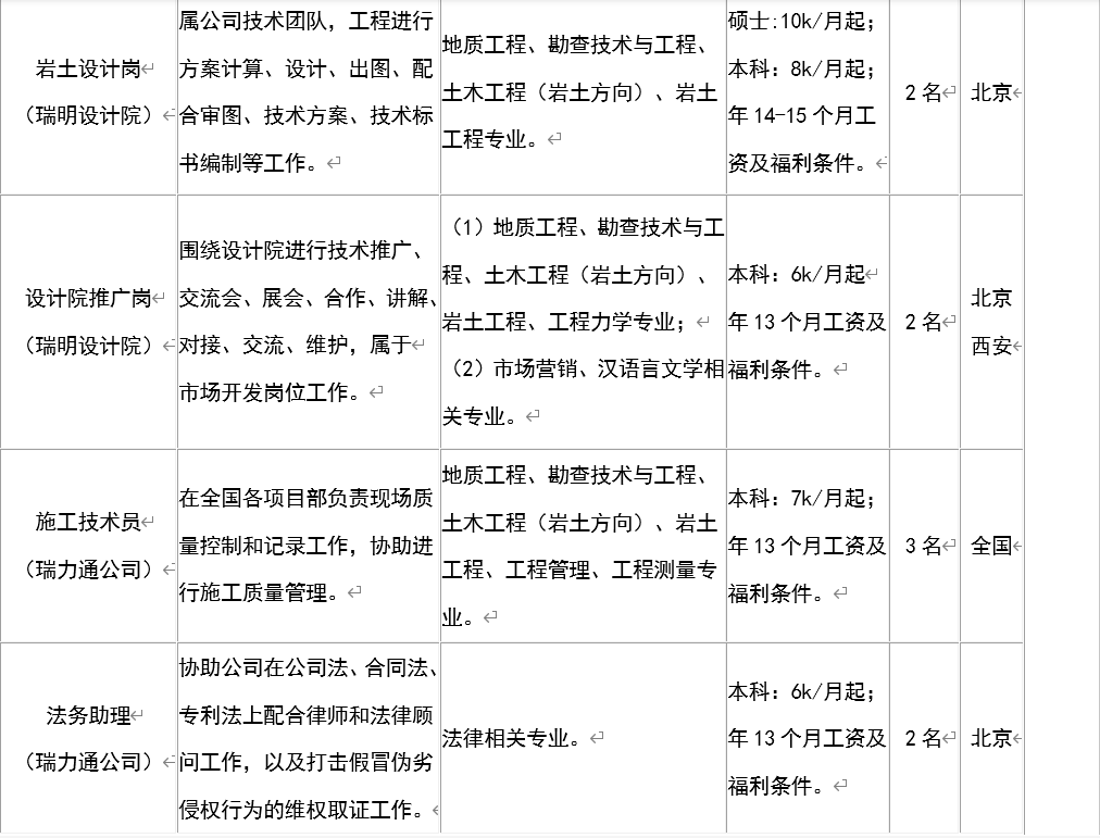(二)招聘需求: