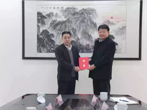 为付宪章董事长颁发了硕士研究生指导教师聘书。签约揭牌仪式后,双方人员就今后进一步加强产学研合作进行了广泛交流。