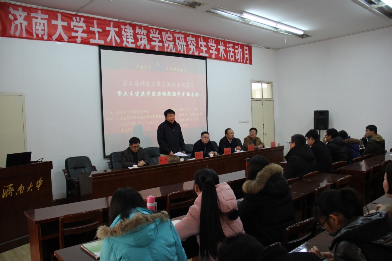 院长何政教授、清华大学土木工程系主任韩林海教授、中国工程院院士彭永臻教授和中国海洋大学海洋工程系副主任刘福顺教授4位校外专家及p站13位教师为学生做主题报告。同时,面向全院在校研究生征集学术论文64篇,涉及结构工程、岩土工程、防灾减灾、市政工程等多个研究方向,所有参与论文征集的同学也通过报告、论文展示的形式介绍了各自的学术研究情况。经7位校外评审专家匿名评审,最终评定出优秀学术论文一等奖4篇、二等奖7篇、三等奖7篇。