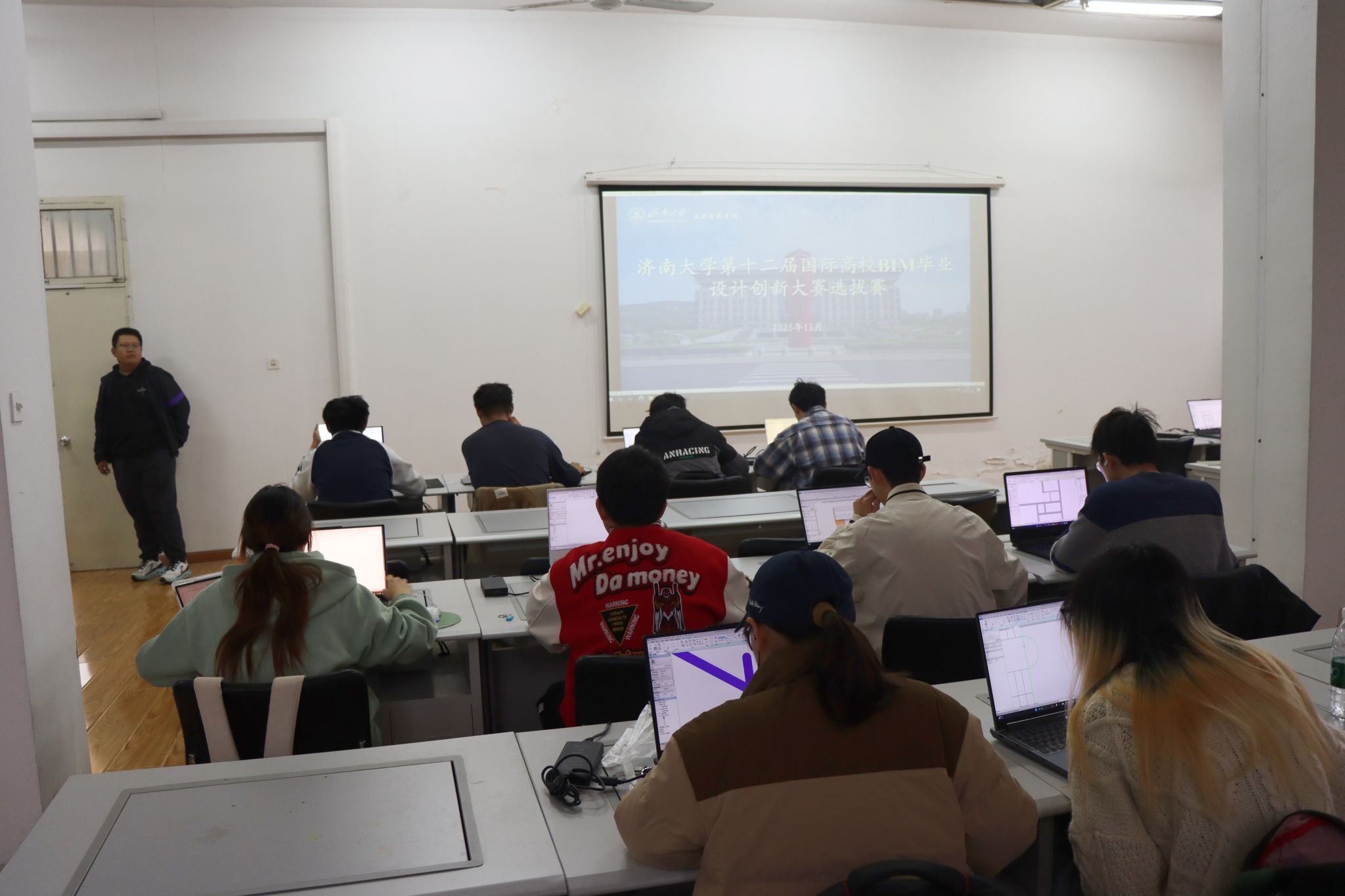 在第八教学楼305机房举办第十二届国际高校BIM毕业设计创新大赛校内选拔赛。