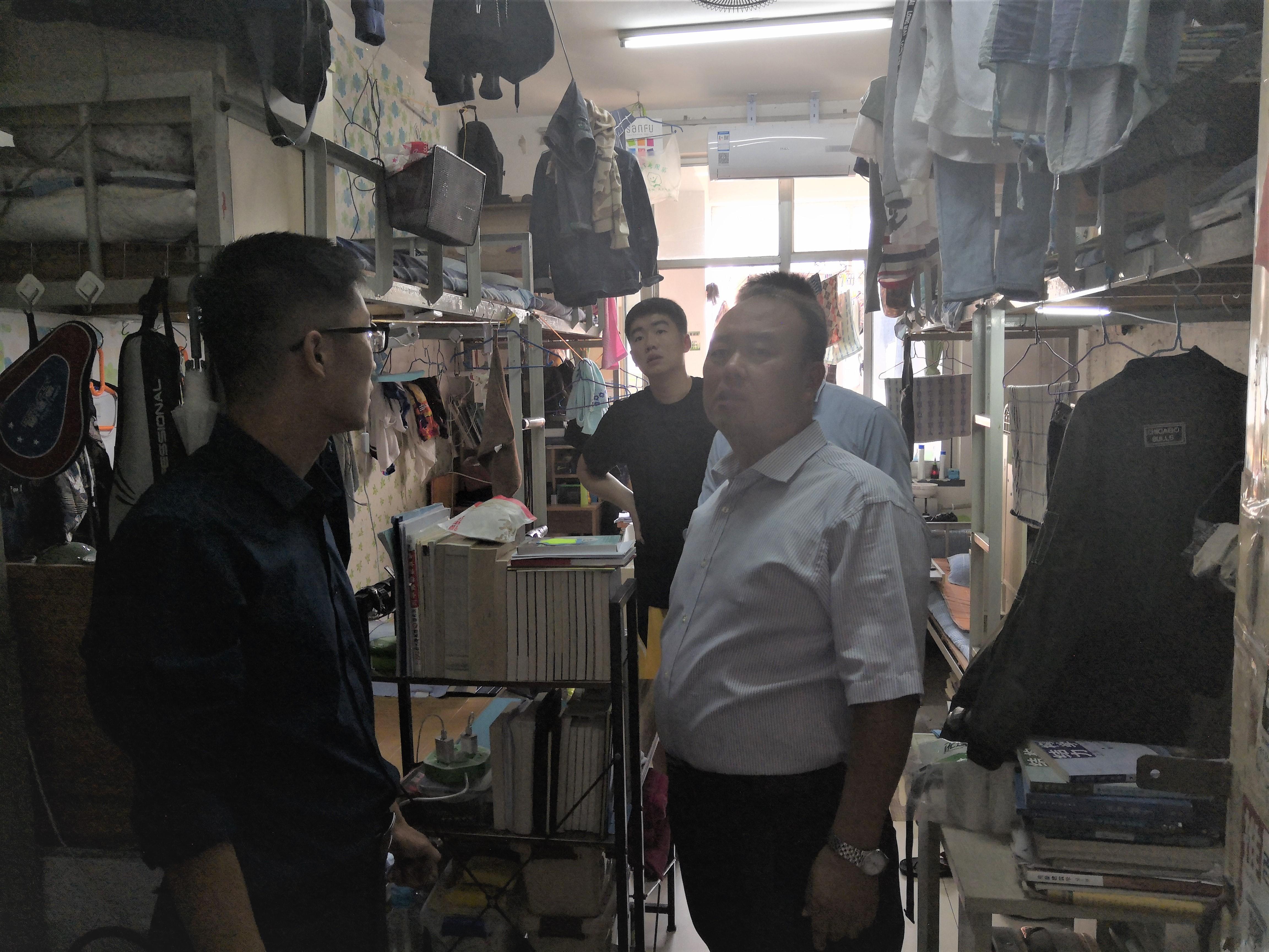 党委书记栾志强及各年级辅导员,前往学生宿舍进行检查。