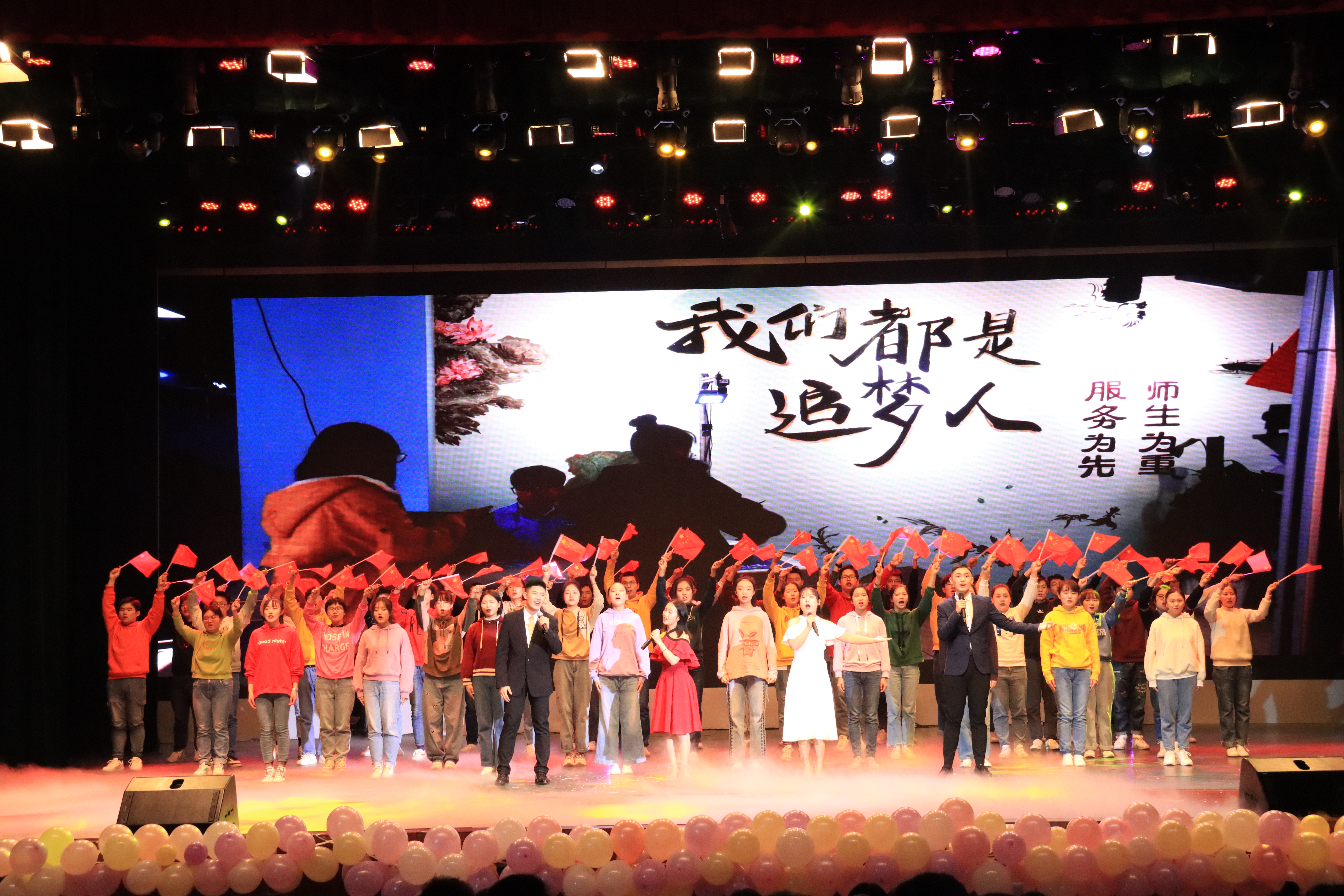 风华正茂青春时,不负少年凌云志。本次晚会以“爱国”、“青春”、“奋斗”、“逐梦”为主线,共分为《初心•梦》、《青春•志》、《砥砺•行》三个篇章。歌舞、器乐、小品、相声、走秀、朗诵,各类节目精彩纷呈,引人入胜,带给观众绝佳的视听体验,向同学们传递了爱国与青春的精神力量。歌曲串烧以及舞蹈节目让观众们感受到青春的无限活力与激情;小品《勿伤青春》使得台下笑声一片,并号召同学们抵御校园暴力,共建美好校园;朗诵《月光下的中国》气势高昂、声情并茂,使同学们为中国的快速发展与取得的成就感到骄傲,点燃了在场每个人的爱国热情;相声《说学逗唱》以其幽默生动的风格引得台下笑声阵阵;魔术与乐器演奏则将观众们领进艺术的海洋,感受魔术与音乐的魅力;大合唱《我们都是追梦人》以及《逐梦》充满青春的活力,带给同学们逐梦道路上一往无前的勇气和披荆斩棘的力量。
