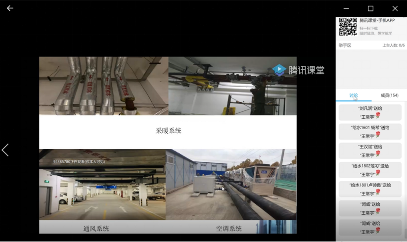 2. 校企同心,共克时艰。给排水科学与工程专业的实习环节,工艺现场的参观学习是不可或缺的教学环节,在专业实践教学基地所在企业的大力支持,多名校友的无私帮助与多方尝试后,最终确定工艺现场网络信号、安全条件允许的污水厂、给水厂,采取网络直播的方式,施工期间网络信号未覆盖或安全不易保障的建筑施工工地采取视频、图像前期采集,网络直播讲解的方式。下图是部分实践教学基地校友为毕业班同学做线上实习直播讲解。