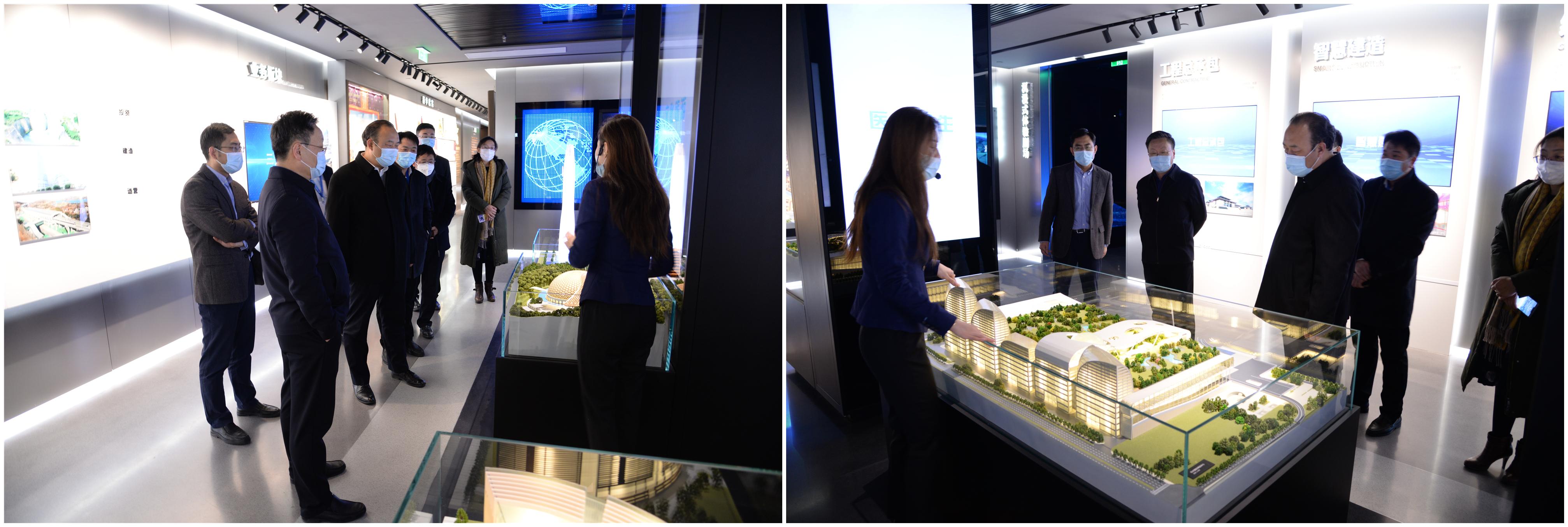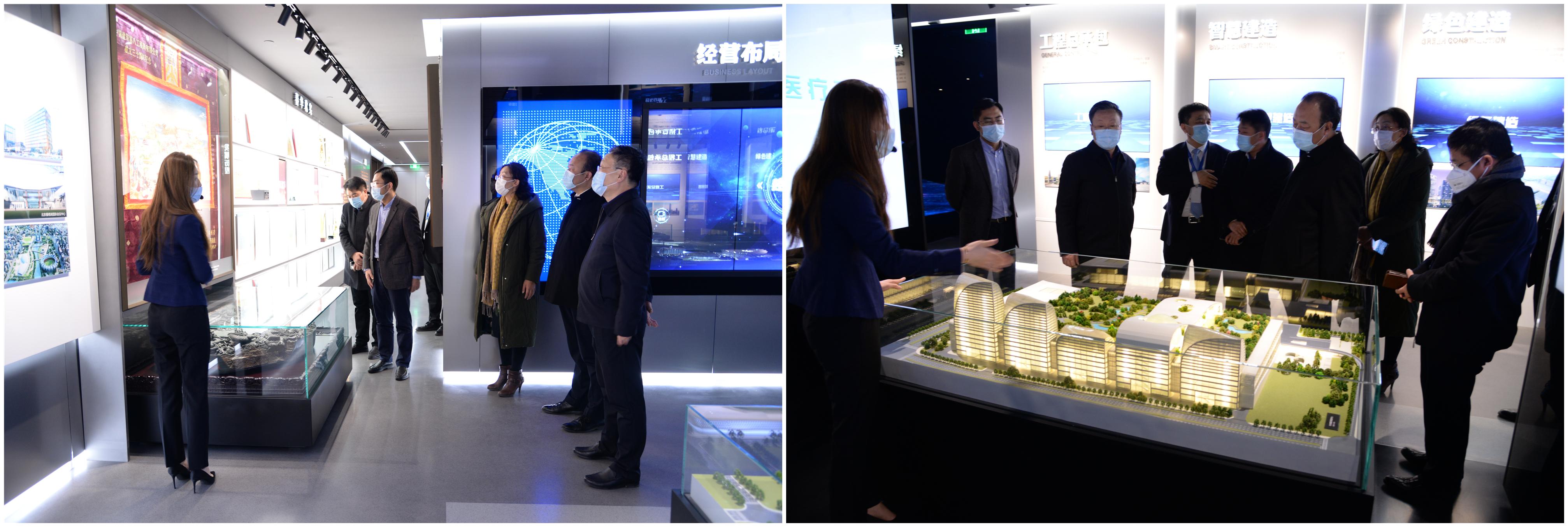 20日上午,张士强校长一行参观了中建八局“军魂匠心 追梦前行”文化展厅。该文化展厅是中建八局品牌形象的展示窗口和文化传承的教育基地。文化展厅面积500平米,分为“筑魂”、“筑基”、“筑梦”三个展厅,以图文介绍、实物展陈、视频展播、沉浸式体验、工程模型、情景互动等多种形式,展现了中建八局的过去、现在和未来。张士强校长一行在讲解员的讲述下,了解了中建八局“令行禁止、使命必达”的铁军文化,进一步感受到中建八局“筑于国家重器之使命,筑于大国崛起之征程”的央企担当。张士强校长详细了解了“智慧建造”和“绿色建筑”领域的发展现状及对行业发展的影响,要求p站