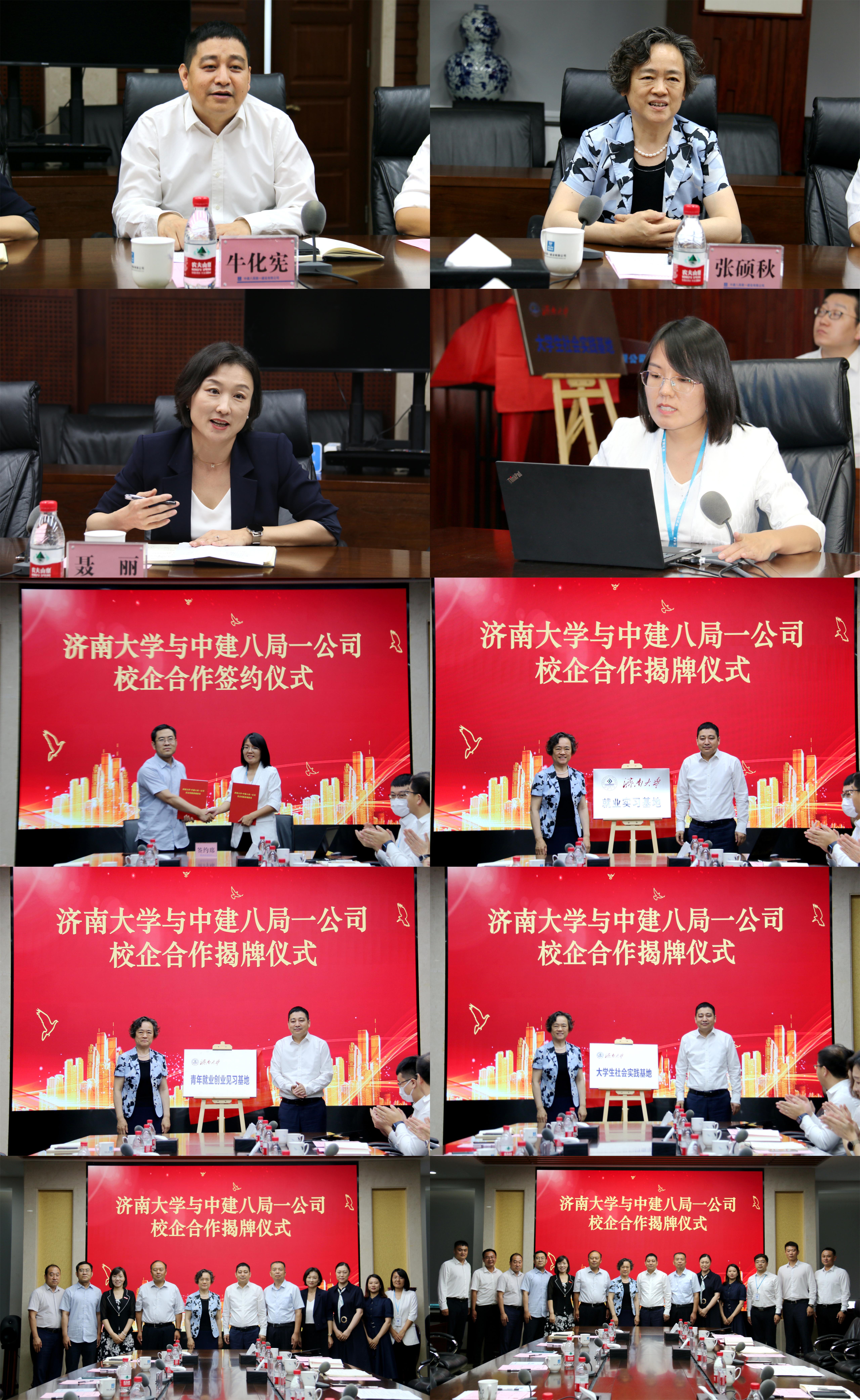 院长谢群代表校方与中建八局一公司签订了校企合作协议书,张硕秋与牛化宪总经理共同为p站