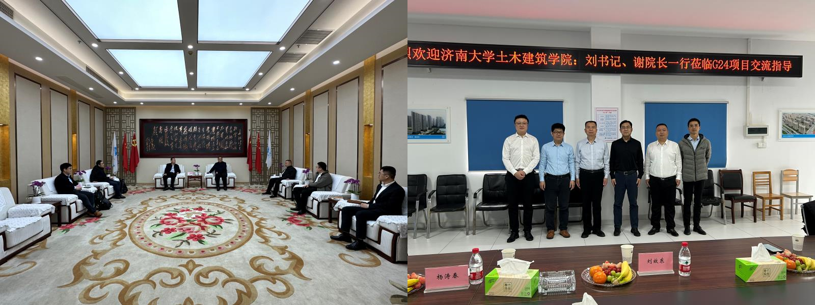 社会服务项目进行了介绍,希望校企双方在学生就业,技术研发等领域开展合作。随后一行人参观了南京G24项目A地块总承包工程项目,并在工程技术上与项目部开展交流探讨。
