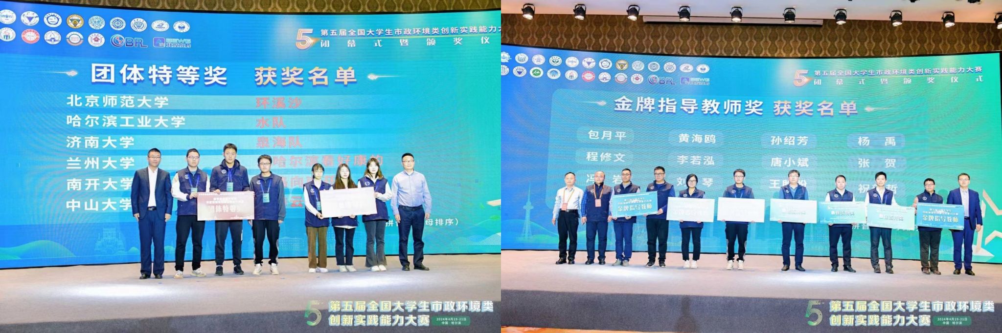 4月19日至20日,第五届全国大学生市政环境类创新实践能力大赛总决赛在哈尔滨市举办,p站给排水科学与工程专业教师冯岩带队参加线下竞赛并出席了闭幕式和颁奖典礼。由p站学生林治全、李骏、李想组成的“泉海队”在本次比赛中表现出色,荣获团体特等奖,指导教师孙绍芳、冯岩同时荣获“金牌指导教师”称号。