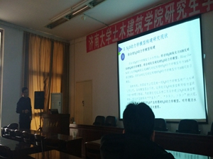 张老师的主题报告之后,参会研究生就此专题展开讨论,并进行论文交流,包括“改性贝壳粉吸附处理含磷废水处理”等市政工程研究方向的交流论文及展示报告。