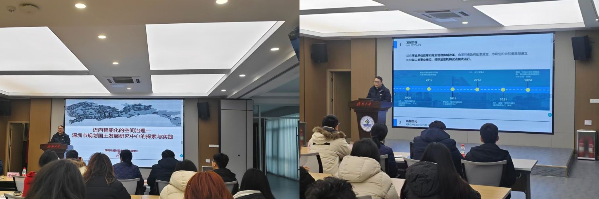 2025年12月16日下午,学院特邀深圳市规划国土发展研究中心0-1未来城市实验室主任助理周青峰在第五学术报告厅做学术报告。学院四十多名专业教师和研究生参加。报告由学院院长助理王林申主持。