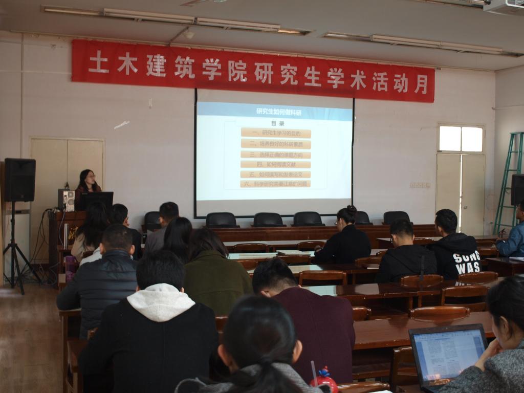 张西文博士和王蕾博士分别就“济南地铁盾构施工与保泉关键技术”和“研究生如何做科研”两大主题做了学术报告。随后10名研究生对其学术论文进行了汇报交流。