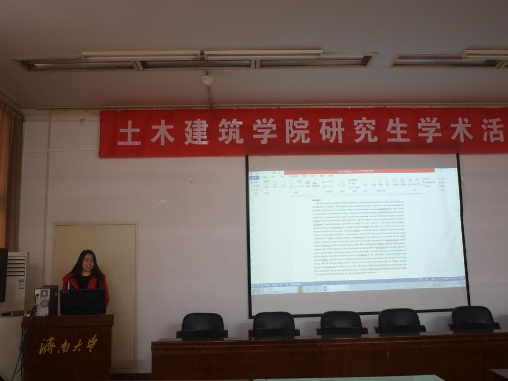 随后,由12名研究生对各自的学术论文做了相应报告,大家从不同的层次和方面讲述了自己在研究中的成果和心得。本次学术报告会活跃了大家的学术思想、促进学术交流、发挥了学术交流对提高学术水平、促进学科建设的积极作用,对日后的科研发展有了良好的指导作用。