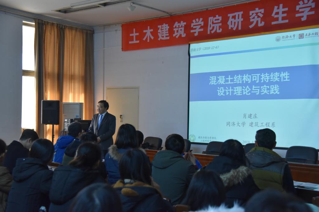 特邀专家同济大学肖建庄教授做了题为“混凝土结构可持续性设计理论与实践”的专题报告。