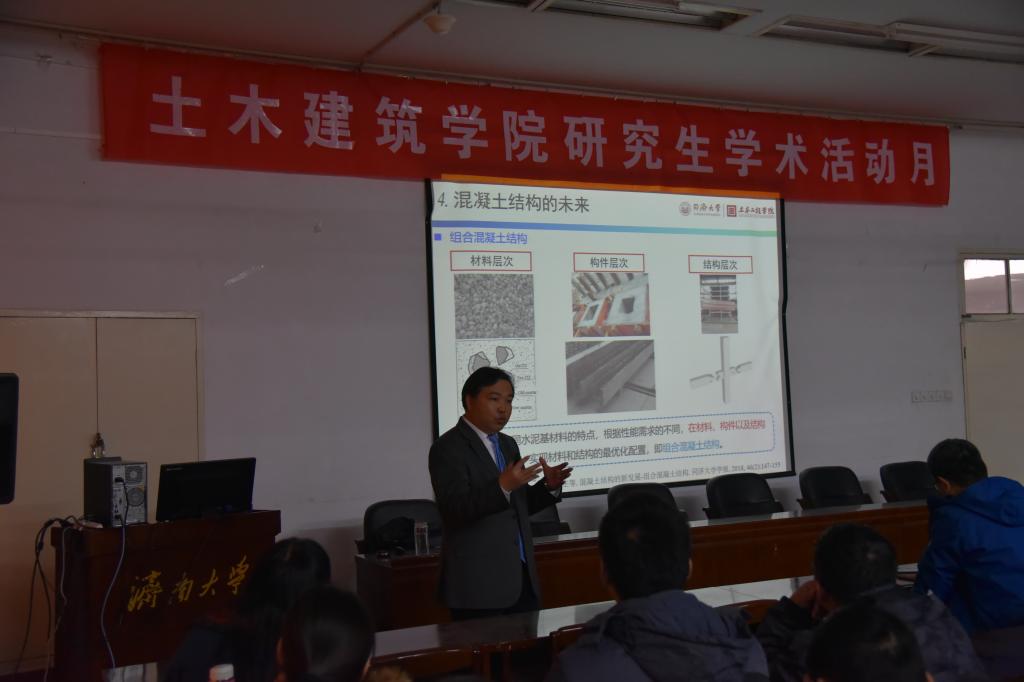 土建专业的学子能在此方面勇敢的迈出步伐。在师生交流阶段,p站学生对再生混凝土的加工费用、加工手段以及再生混凝土的性能提出疑惑,肖教授则运用专业的知识对同学们提出的疑问一一做出解答,随后学术报告会圆满结束。