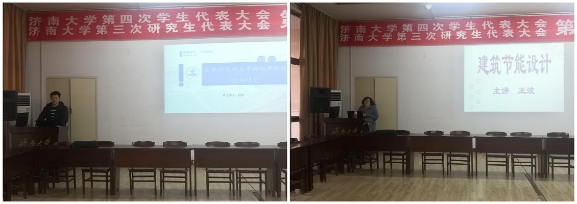 王波老师就“建筑节能设计”做了主题学术报告。王老师以生活中的实例为在座同学讲述了常见的建筑墙体节能及门窗节能措施,向同学们传递了建筑节能的理念,提醒同学们在进行设计的同时要注意节约资源,提高自己的环境责任意识。接下来,14位研究生对各自的学术论文做了相应报告,在座同学踊跃发言,积极表达自己的看法与思想,气氛热烈。