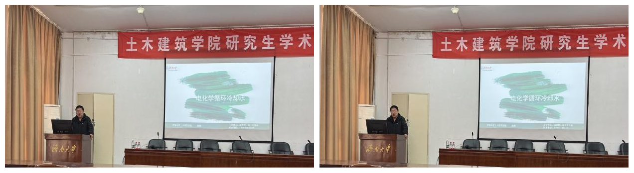 在本次学术报告中,张刚老师做出题为“新型循环冷却水水质软化技术研究进展”的主题报告,首先张刚老师介绍了新型循环冷却水水质软化技术的工艺原理,展示其反应器设计,同时总结了他的工艺特点,最后结合生动形象的典型案例让我们更加深入地了解了新型循环冷却水水质软化技术。张刚老师的生动、精彩的报告赢得了在场所有人的热烈掌声。最后,17位研究生就各自的研究成果做出相应报告,在报告中,同学们相互探讨,积极交流,学术氛围浓烈。