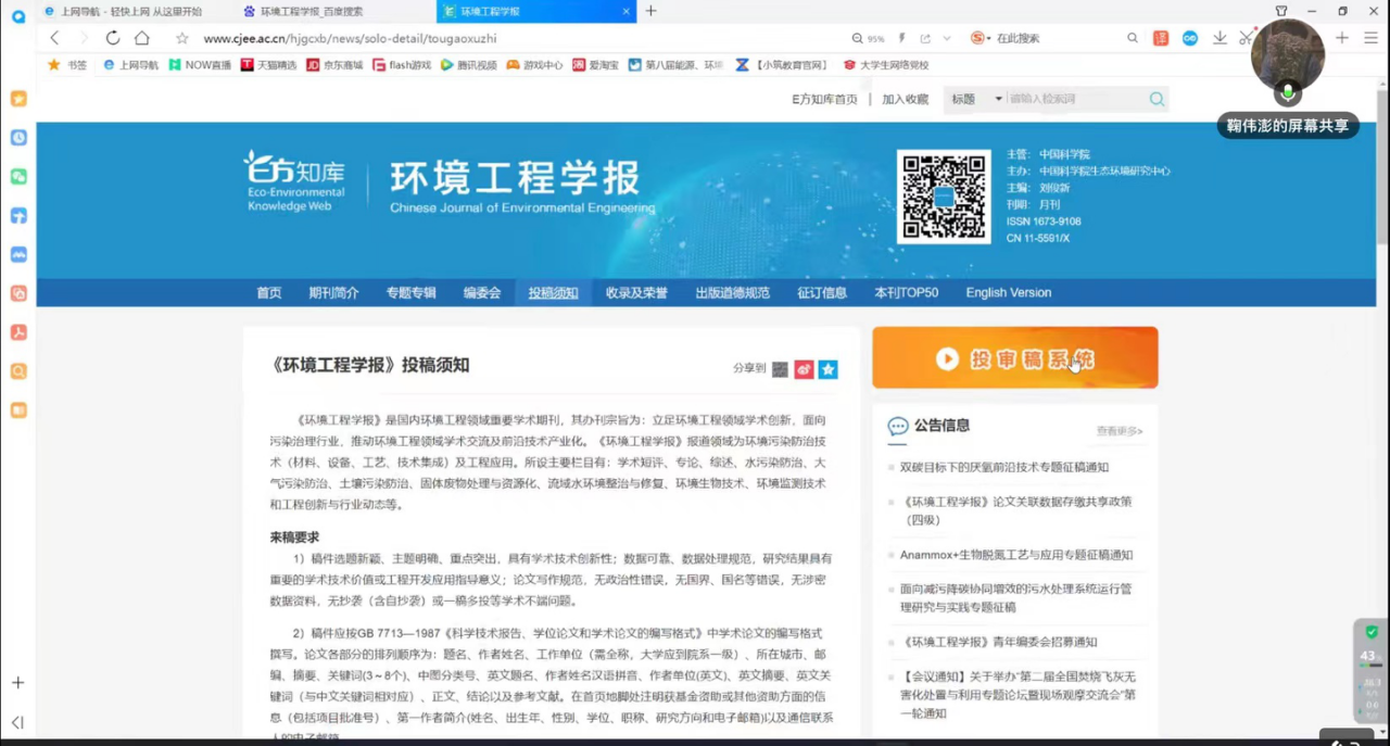 鞠伟澎同学向大家分享了自己论文的投稿经验。以《陶瓷膜处理油田采出水的膜清洗方法研究》为例,鞠伟澎同学向大家分享了如何选择合适的期刊,投稿时需要注意的事项,以及如何恰当的回复并处理审稿人的意见。