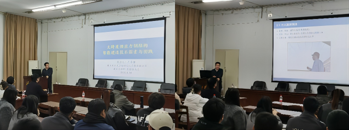 王泽强教授首先介绍了钢结构在国内外的发展现状以及常用预应力钢结构的分类和适用范围,以及智能建造的发展背景,指出我国目前建筑行业智能化程度较低,对人工需求较大,人口老龄化、劳动力优势减弱,亟待提高生产效率等问题;接着介绍了新城建、智能建造与建筑工业化协同发展在内的政策背景。然后,王教授介绍了BIM相关技术研发与应用,最后,王教授在关于智能检测技术的研发与应用部分,介绍了包括索力检测常用方法,典型索结构的施工方法等,并展示了近几年的典型工程,包括2022冬奥会国家速滑馆、2022世界杯卡塔尔主体育场、援柬埔寨体育场。王教授的精彩报告激发了师生的极大兴趣,会后,王泽强教授与现场师生进行了热烈交流,就出大跨度预应力钢结构的相关问题进行了深入探讨。
