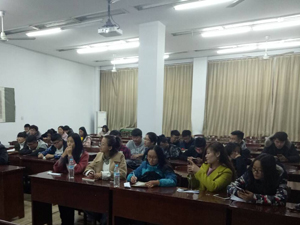 于八教会议室举办新生普通话大赛。比赛由院学生会纪检中心负责,并邀请到专业人员担任评委,同学们积极参加。