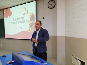 栾志强书记从三个方面对入党积极分子提出了要求:一、端正入党动机,做一名合格入党积极分子;二、加强政治理论和专业学习,发挥党员的先锋模范带头作用;三、强化自身修养,用一生践行自己的理想信念。朱红岩书记结合国际国内形势和党的历史对入党积极分子进行了爱国主义教育专题报告。报告结束后,入党积极分子集中观看了十九大报告及相关解读视频,更加深入地理解了“不忘初心,牢记使命,高举习近平新时代中国特色社会主义义伟大旗帜,决胜全面建成小康社会,夺取新时代中国特色社会主义伟大胜利,为实现中华民族伟大复兴的中国梦不懈奋斗。”的十九大主题。