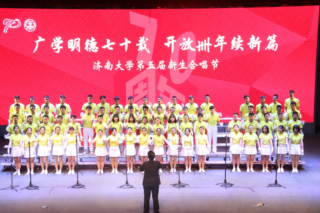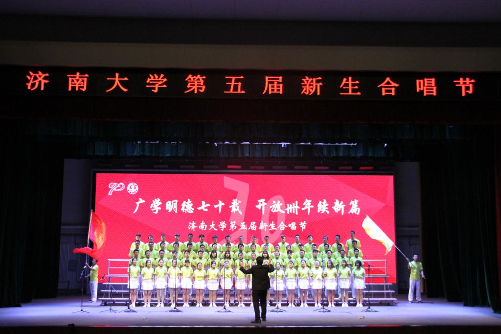 在军训前后积极进行宣传,在大一新生中逐步选拔合唱团成员,抽取每天晚上的休息时间进行练习,从无到有,每一个参与其中的同学都付出了最大努力。在上场之前,好多同学还在复习合唱的旋律、歌词和动作。随后大家井然有序地上场,排好队形,以最好的精神面貌展现出土建学子的风采。同学们满含深情地演唱了《你我同行》,高低声部配合默契,歌声婉转昂扬,充分表达了大家对学校的热爱。在自选歌曲演唱环节,伴随着翼虎军团令人热血沸腾的表演,配合p站