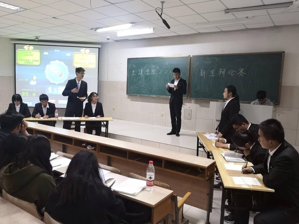 赛前各方选手做出自我介绍,然后进行比赛。辩论赛共有立论、驳立论、质询盘问、自由辩论、总结五个环节。辩论双方各四位辩手,有共计50分钟的比赛时间。赛场上,辩手们情绪激昂,竭力论证己方观点,毫不退步。各个队伍准备十分充足,辩论开始时便妙语不断,用各种论据来补充己方的论证,双方互有来回,初显紧张状态。在随后激烈的质询盘问环节中,台下的观众们掌声连绵不绝。场上氛围不断高涨,比赛也越趋紧张,辩手们妙语不断,立证引据思路清晰,观众不断拍手称快,展现了土建学子们非凡的风采。辩论结束后,评委们做出点评并指导,各队伍认真听取建议,胜不骄败不馁。