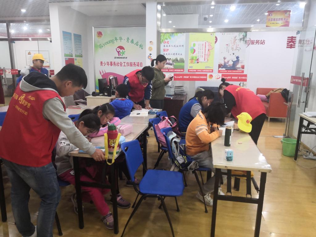 志愿者来到梁南、泉景社区对小学生进行课后辅导,为活泼好学的小学生们带来学习和生活上的帮助。