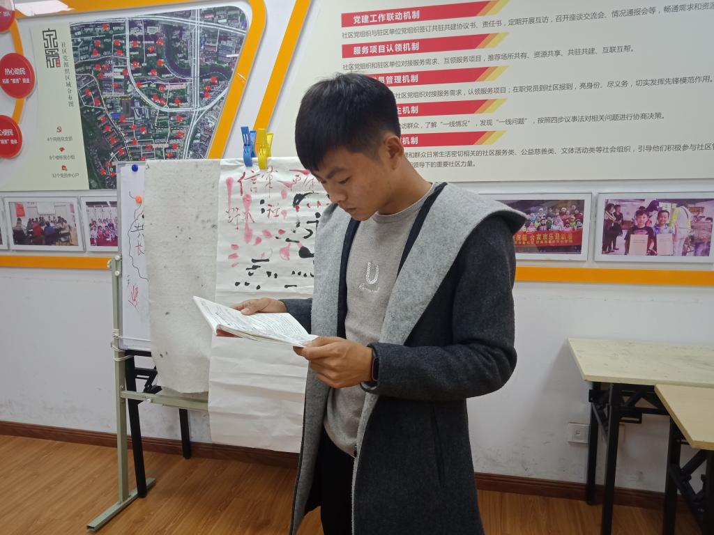 志愿者们乘着车到达社区时,小学生们已经开始学习。在回答问题时,志愿者们没有仅限于知识本身的讲解,而是通过习题去教给小学生解题的思路。小学生写作业的过程中,志愿者还为小朋友们书写了一些每天积累的生字与名言名句。写字一笔一划、板板正正,充分体现了一名志愿者的责任心。随后,志愿者们还自愿承担了社区的卫生工作,将社区打扫的一尘不染。对小学生做了道别后,志愿者们结束了本次志愿活动,欢乐的时光总是短暂的,天渐渐黑了,志愿者们在孩子们依依不舍的目光中离去。