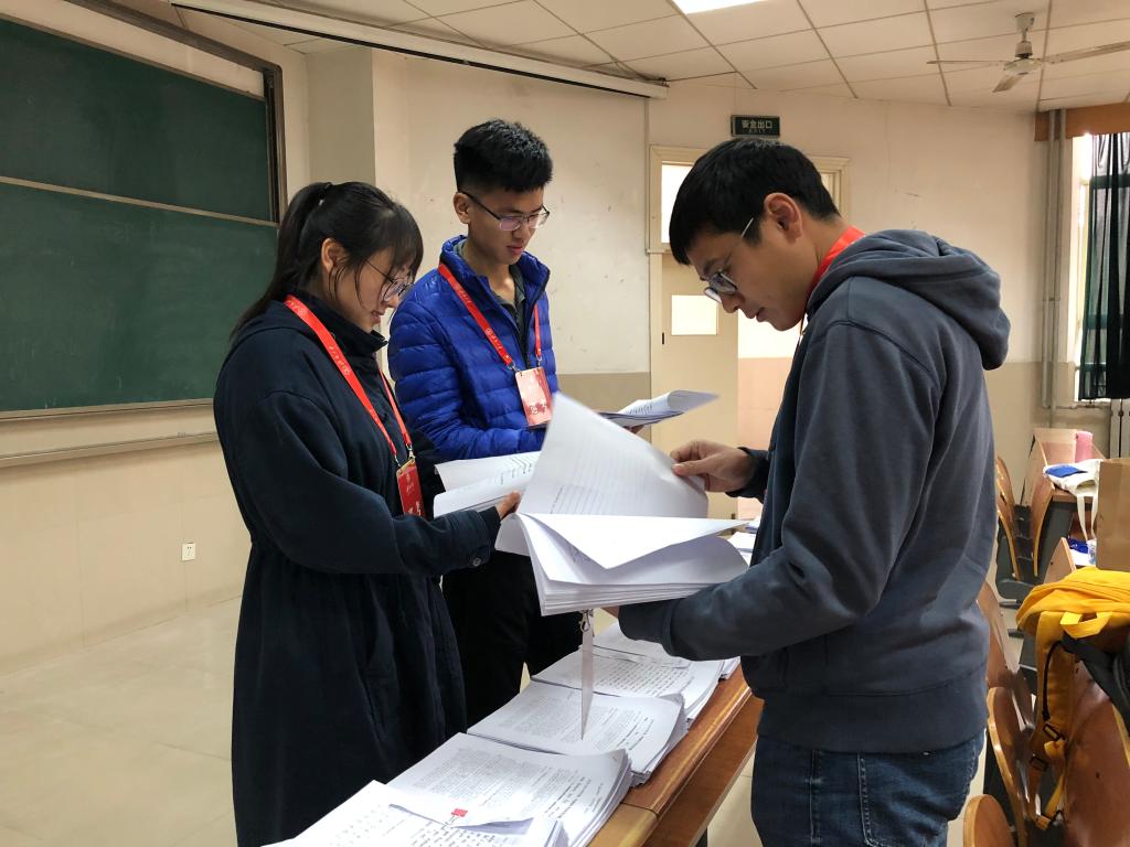 本次考试共有英语、数学、画法几何三个科目。考试试题由学生会学习部来根据学生的现有学习情况来制定,试题难度由易到难层次分明,便于成绩具有明显的分化,达到警示目的。考试前考务组分工明确,做到考试流程严谨、纪律良好,考生们认真仔细答题,遵守诚信考试原则。考试监考组由p站