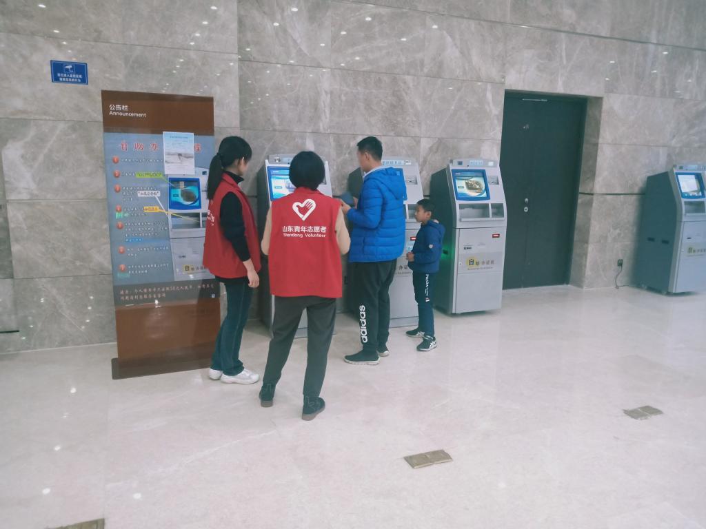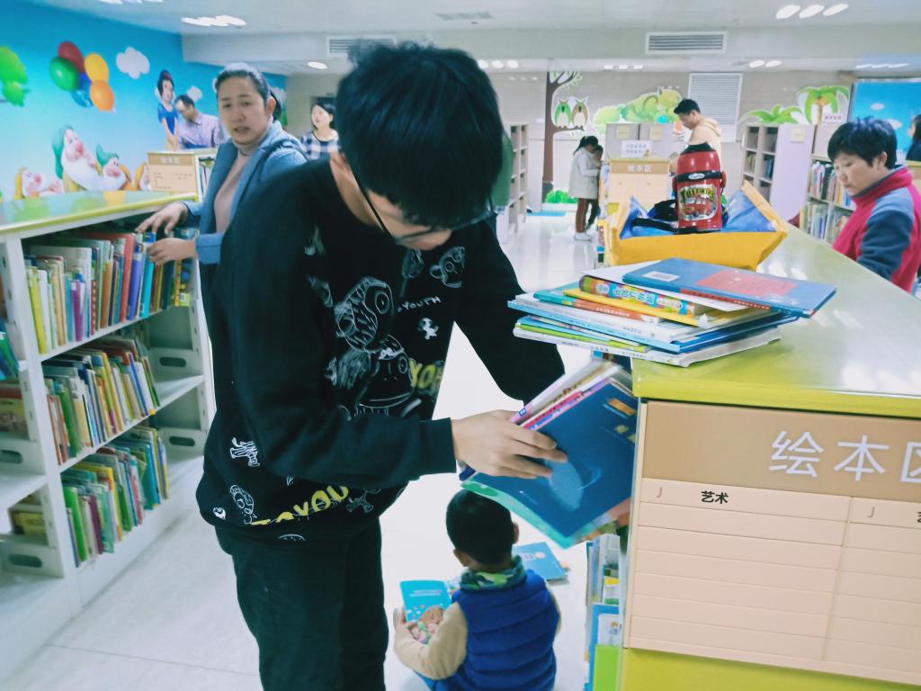 青年志愿者协会的志愿者们来到济南市图书馆进行志愿者活动。