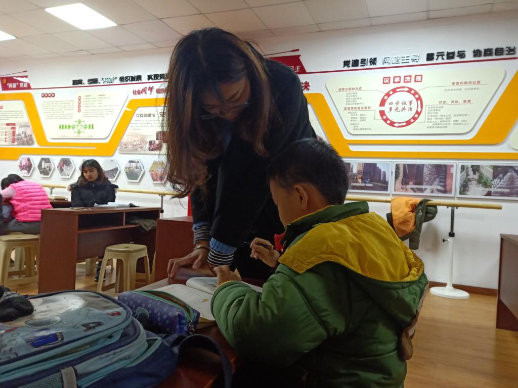 志愿者来到梁南社区与泉景社区,陪伴着那里的小学生进行课后学习,为他们答疑解惑。