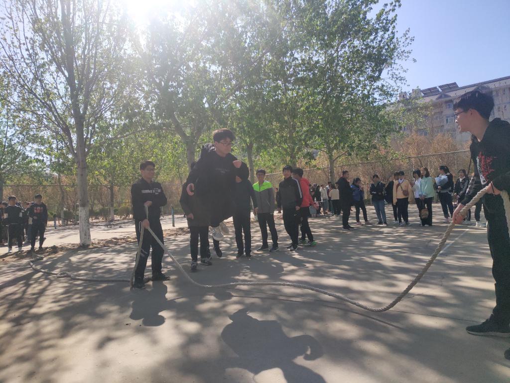 与传统运动会相比,趣味运动会是将竞技与娱乐相结合,着重于鼓励同学们参与合作和交流,充分发扬团体合作的精神。比赛项目丰富多彩,趣味性十足,合作性较强,涵盖了托球跑、夹弹珠、“手忙脚乱”、沙包投准、男女混合400米接力跑、集体跳大绳、螃蟹背西瓜、盛水接力、数字折返跑共9个项目。三月乍暖还寒,在热闹的气氛中,每个人都在赛场上或奋力拼搏,或加油打气。在"盛水接力的赛场上,同学们跃跃欲试,比赛的哨声吹响时,大家奋力前进以取得更好的成绩;“沙包投准”的每次得分都赢得大家热烈掌声;在“手忙脚乱”项目中,参赛队员们需要小心翼翼,紧张刺激地用手和脚按规定交替前进以完成指定路线。
