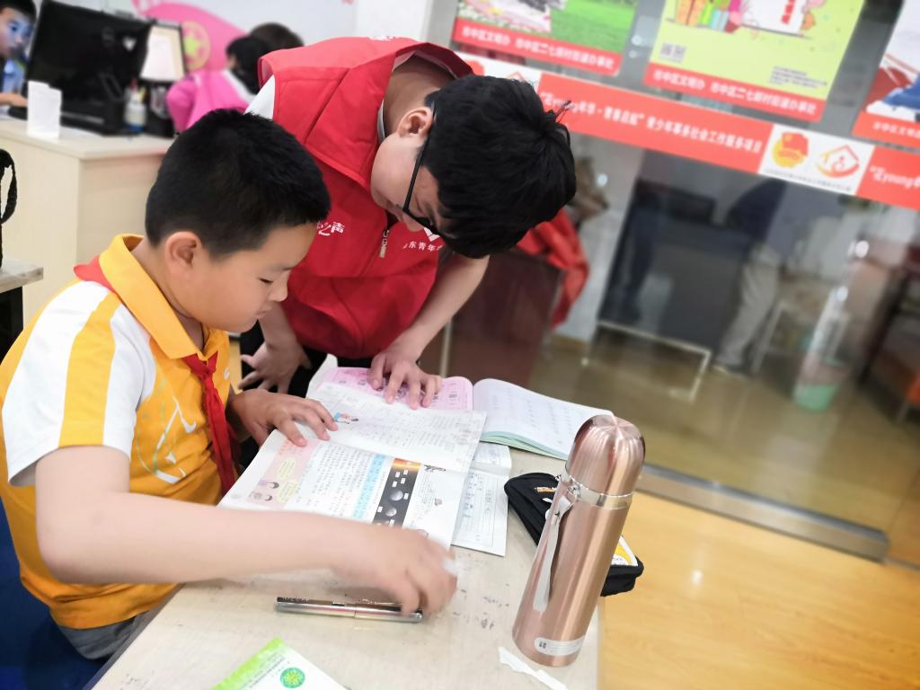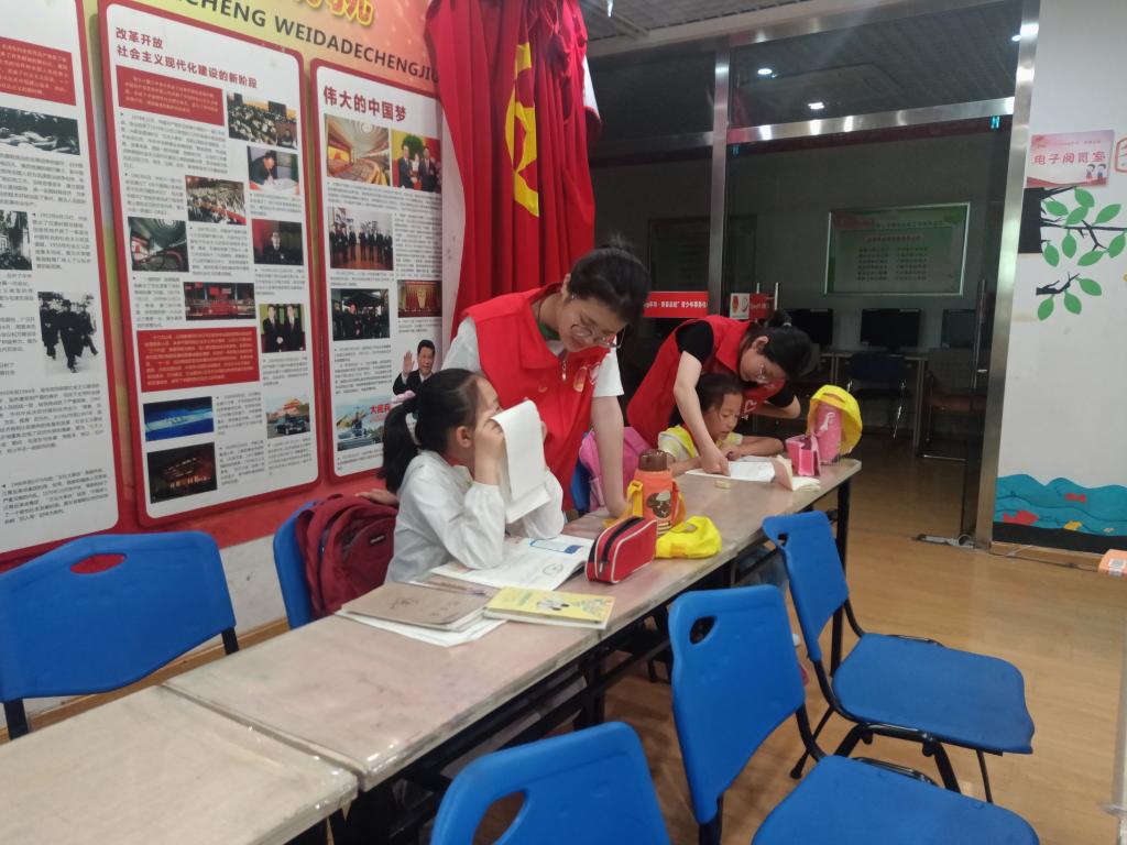 志愿者于5月21日来到梁南社区进行辅导工作。
