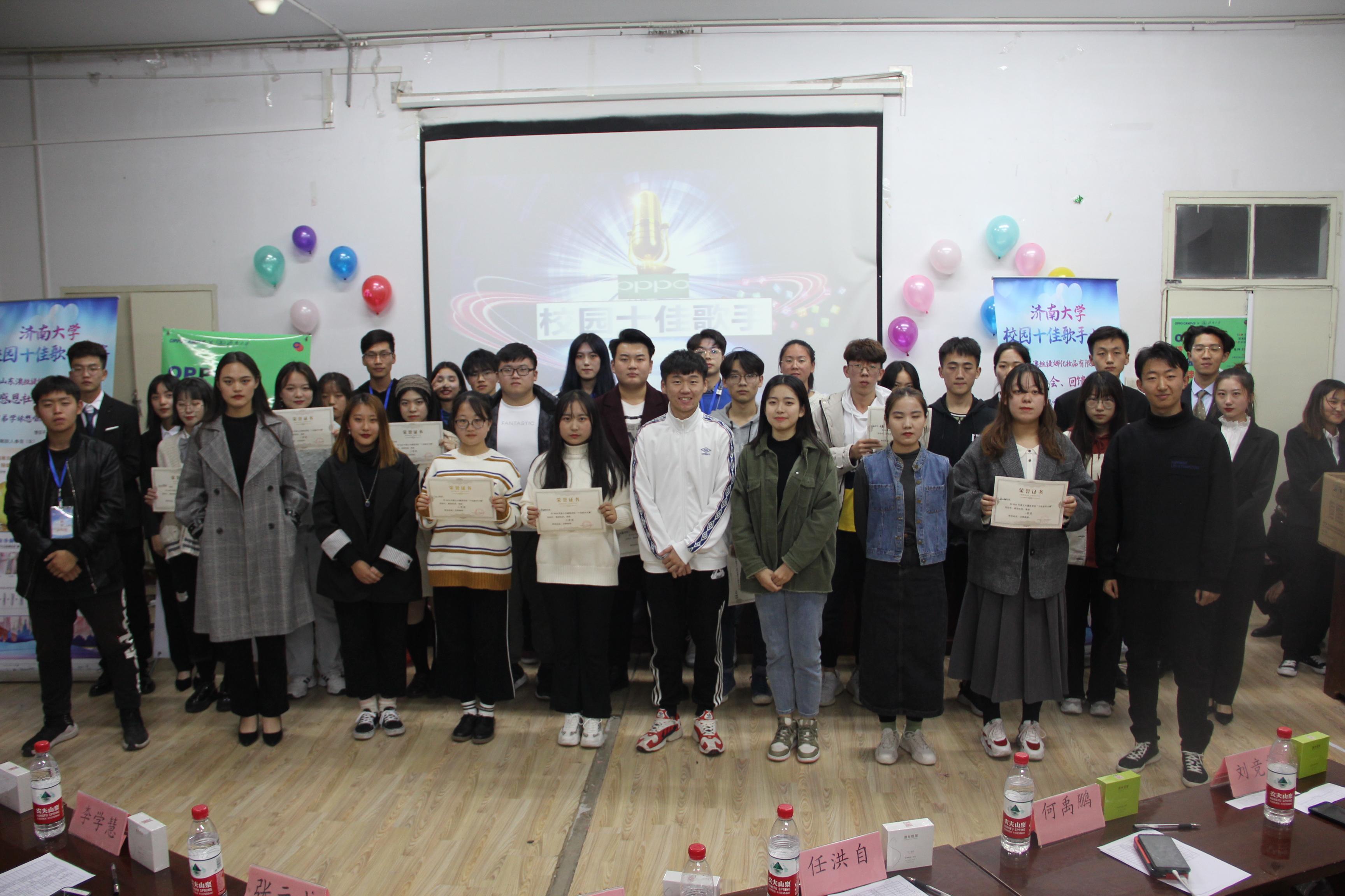 组成的评委团在热烈的掌声中入场,随后,主持人进行活动开场,并宣布比赛开始。本次活动主要分为两个环节。参赛选手按签到顺序进行第一环节“自我介绍”与“自备清唱歌曲选段演唱”。观众们陶醉于这一首首优美的歌声中,纷纷赞赏参赛者的天籁之音。晋级选手于第二环节进行“带伴奏演唱完整曲目”,这一环节自始至终掌声雷动,经久不息。自本次十佳歌手活动策划举办以来,所有参赛选手积极筹备,个个着装大方,仪态稳重,富有青年人的活力与朝气,为同学们带来了一场丰富的视听盛宴。为了让更多同学了解此次活动,文艺部学生通过直播平台实时跟进比赛进程,分享比赛内容。比赛结束后,由文艺部评选出本次活动的十佳歌手,并由评委团进行获奖证书颁发,评有一等奖两名、二等奖三名、三等奖五名,活动在观众的激烈掌声中落下帷幕。