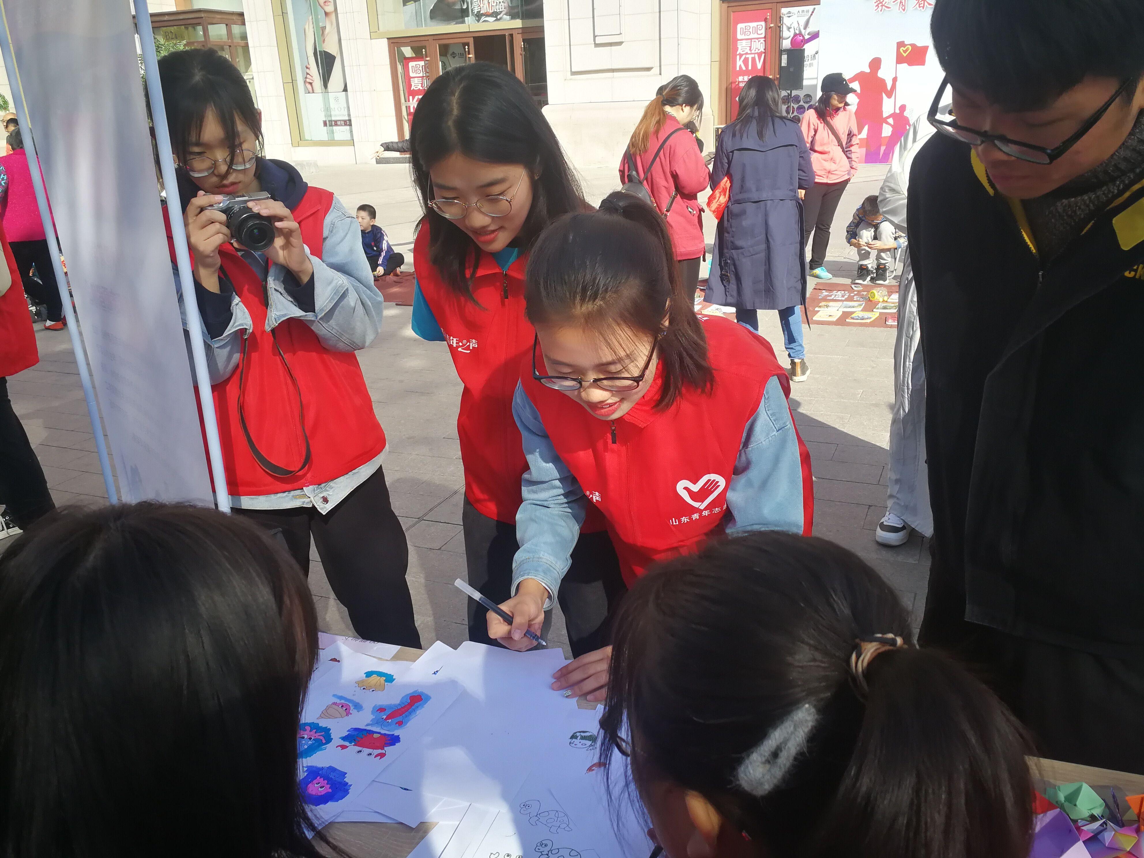 志愿者们来到二七新村街道铁一社区党群服务中心、欧亚大观广场,参加“聚青春·公益行”志愿服务发展平台揭牌仪式,并进行“大手拉小手—童趣筑梦” 志愿活动展示。