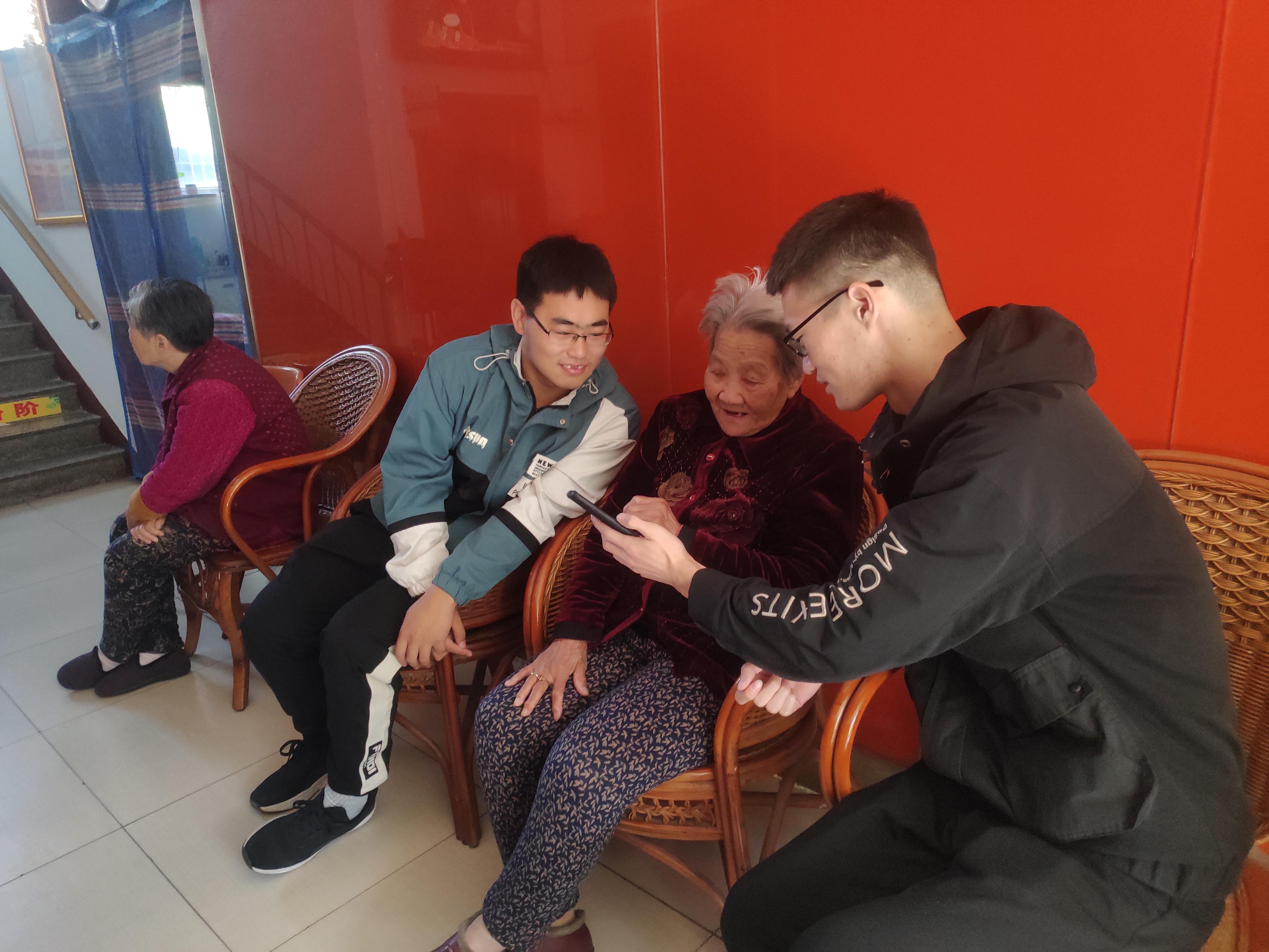 志愿者们到达敬老院后,便开始跟老人们聊家常。自我介绍过后,大家蹲在老人身边,跟老人谈心,通过交流使得过去的回忆又浮现在他们的脑海中,现场气氛欢乐融洽。老人们还给志愿者们看他们儿女的照片,分享他们与儿女的点点滴滴,并感慨现今生活的美好,教育志愿者们要学会珍惜现在幸福美好的生活,之后学生们和老人们进行了互动活动。有些同学和老人们下起了棋,会麻将的与老人打起了麻将,老人也与志愿者们玩的很开心,他们对同学们的到来表示感谢。最后,p站