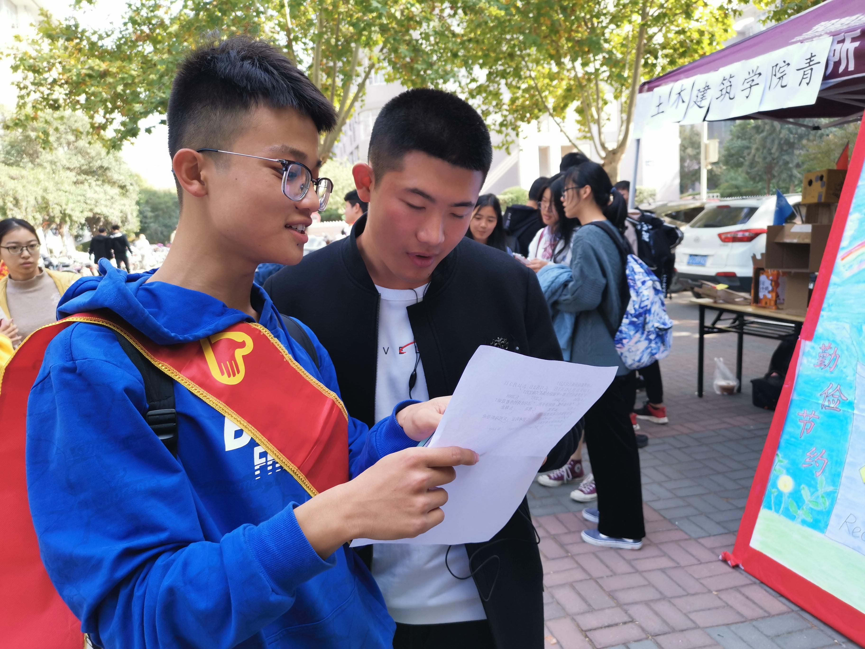 志愿者们被分成了两组,分别负责不同的任务。一组同学负责邀请路过的学生上前观赏创意作品,并让参观者对自己喜欢的作品扫码投票,志愿者们在一旁对作品进行简单介绍,并给予每一位参与者小礼品。当参观者有特别喜欢、想要学习如何制作的作品时,可以直接联系作者,询问其更多相关信息,将变废为宝、勤俭节约这一理念传递下去。另一组志愿者们负责街头采访,他们对路人进行随机与勤俭相关的问题采访,根据答对的题目个数给予相应奖励,还采访参与者曾有过哪些具体的勤俭经历,并做好记录与统计。