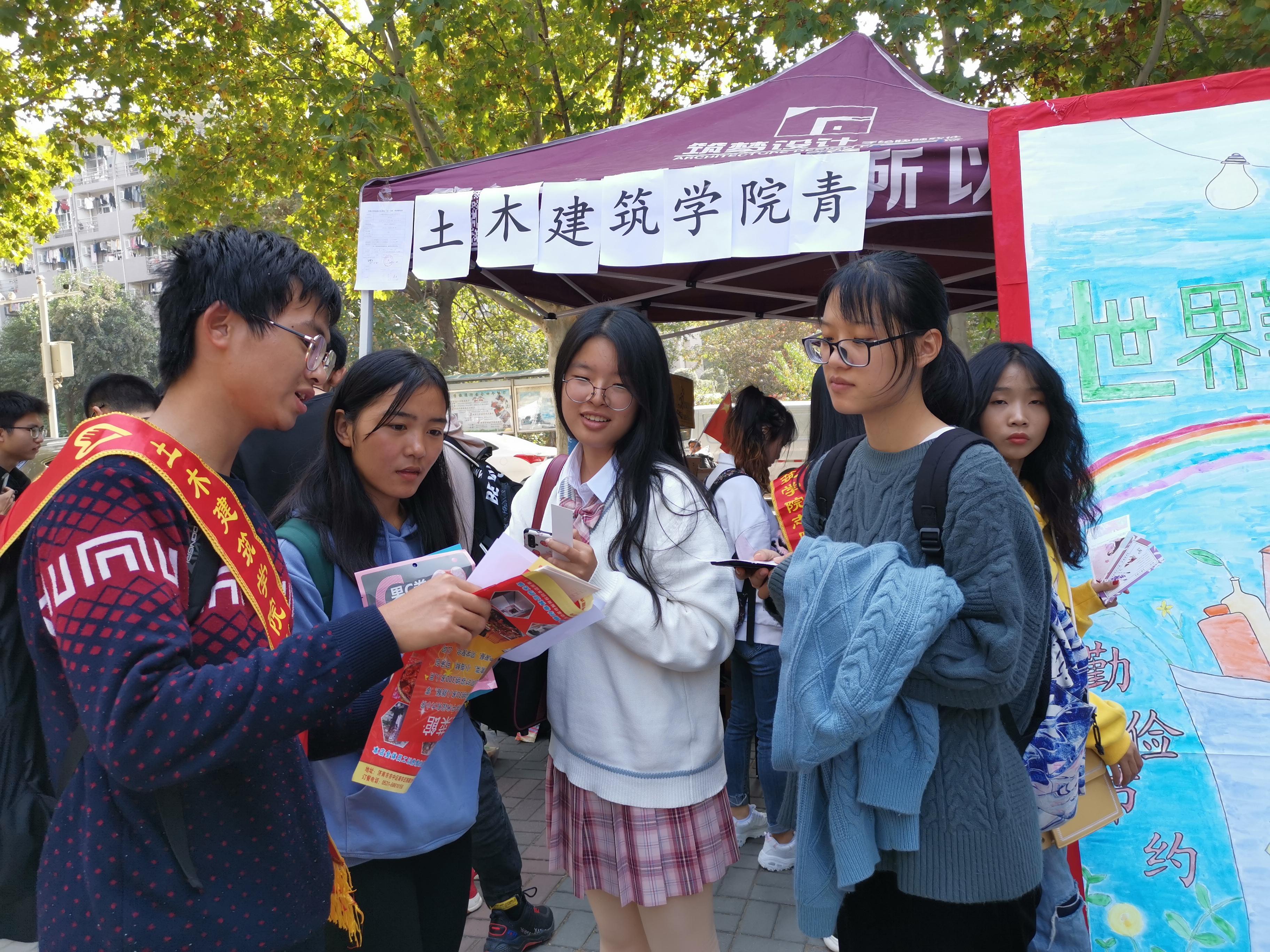 上午十一点,志愿者们来到了八食广场,搭建好帐篷,摆放好桌子,并将所需要的物品整齐摆放好,为活动的进行提前做好准备。活动中,p站