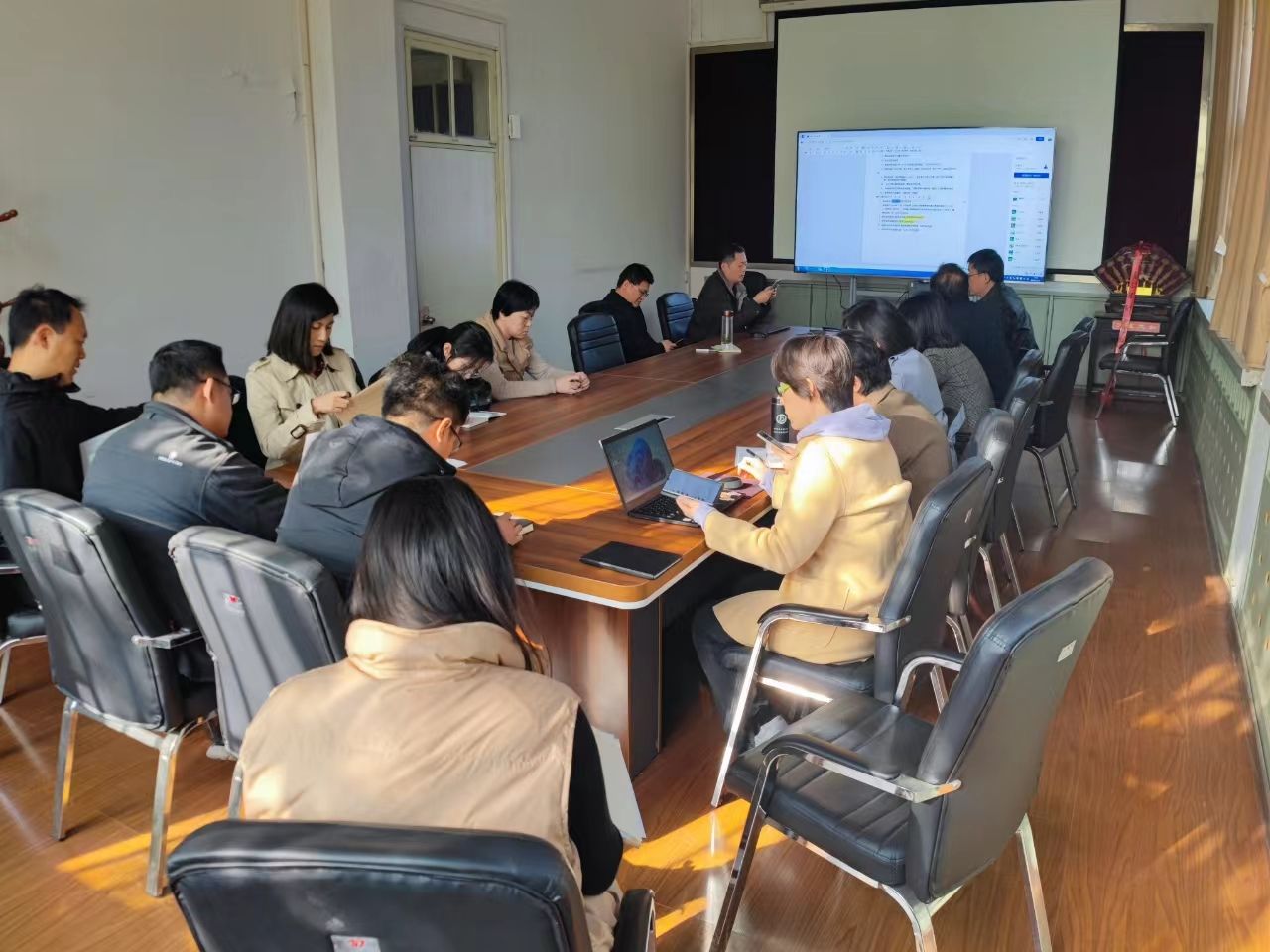 本次会议由p站 领导、各系部主任、秘书以及审核评估工作小组成员共同参加。会议听取了教学管理办公室负责老师与系主任对专业培养方案、课程大纲、授课计划、试卷、毕业论文(设计)、实验实习实践记录等过程性与终结性材料归档管理情况汇报,部署了下一步教学档案检查与制度文件修订工作。