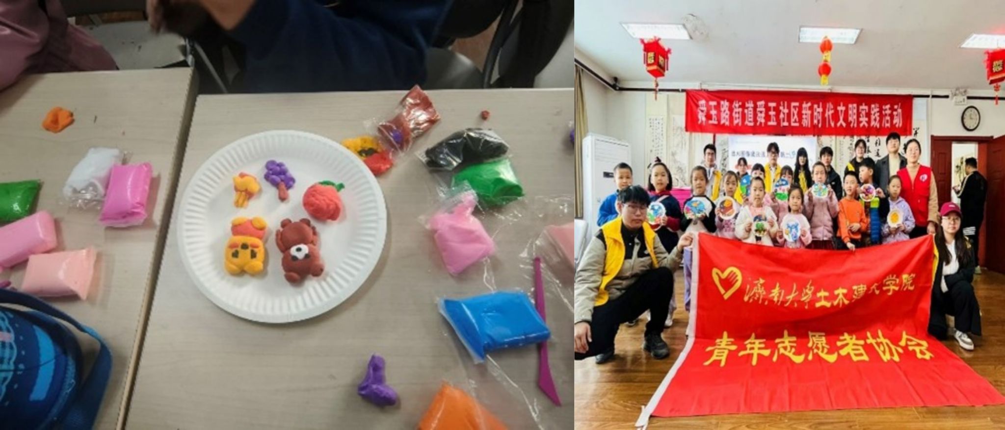 青协志愿者,在舜玉社区内成功举办“当AI图像魔法遇上创意黏土”儿童创意手工黏土活动。