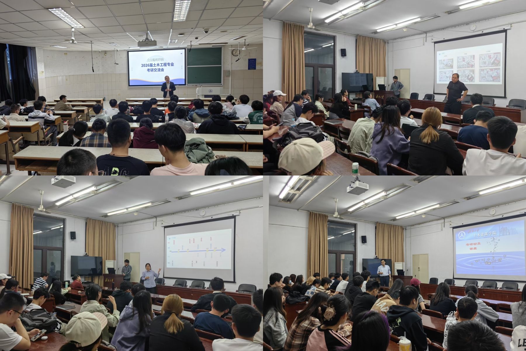 于2025年5月9日分专业举办了四场考研、考公经验分享交流会,特邀p站专业教师以及2025届10名考研、考公优秀学子分享经验,2026届全体毕业生参加。