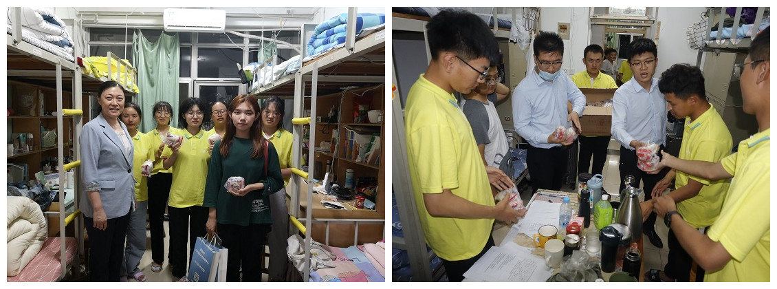 党委副书记、副院长朱小燕携团委书记高连隆、2020级新生辅导员刘健成来到新生宿舍,给2020级新生带来学校定制的中秋月饼,并送上亲切慰问和祝福。