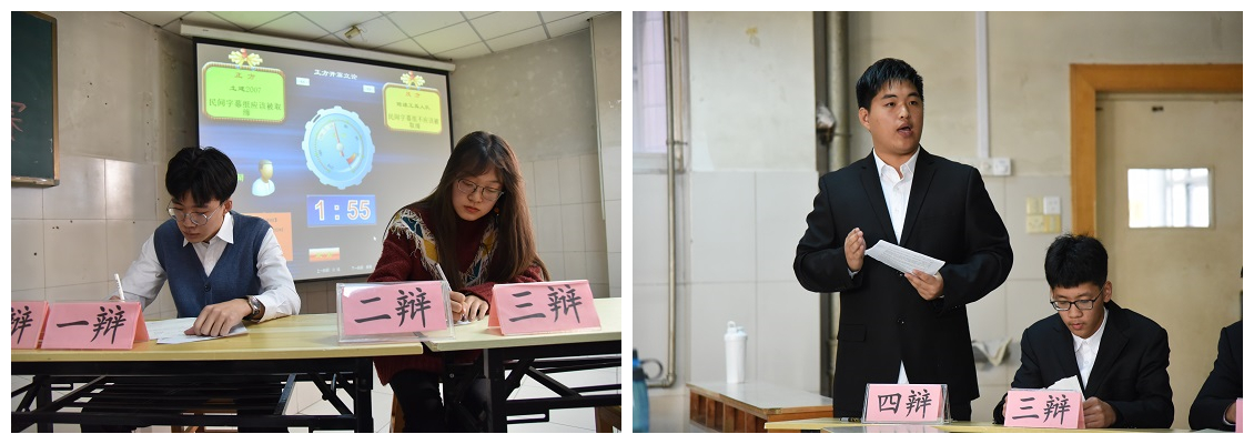 第二教学楼205如期举办。此次辩论赛邀请了院辩论队优秀队员担任评委,充分发挥网络直播平台优势,利用线上线下相结合的方式进行线下比赛和线上直播。