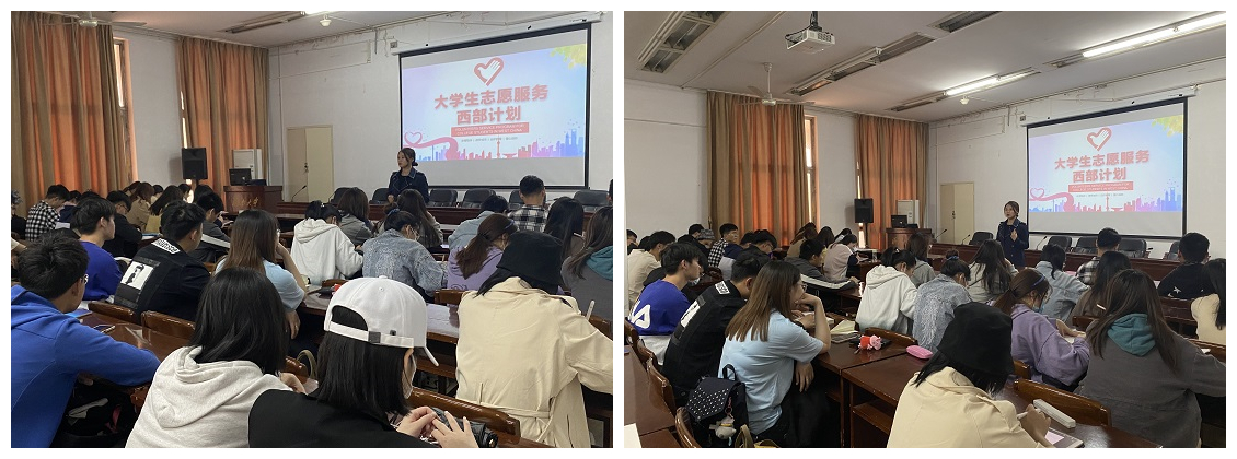 会上,白雪飞老师对西部计划志愿者政策保障、近年志愿者的招录情况、在岗服务情况以及西部风土人情进行了详细介绍。随后,她又为大家分享了p站部分志愿者参加西部计划的初衷、在基层服务的丰富经历以及作为西部计划志愿者的巨大收获。