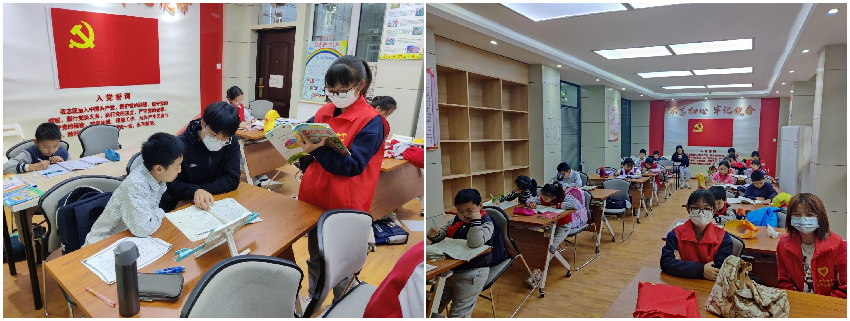 筑梦砼行青年志愿者协会的志愿者们来到了大观园“聚青春·少年强”社区青少年综合服务中心给放学的孩子们进行功课辅导。