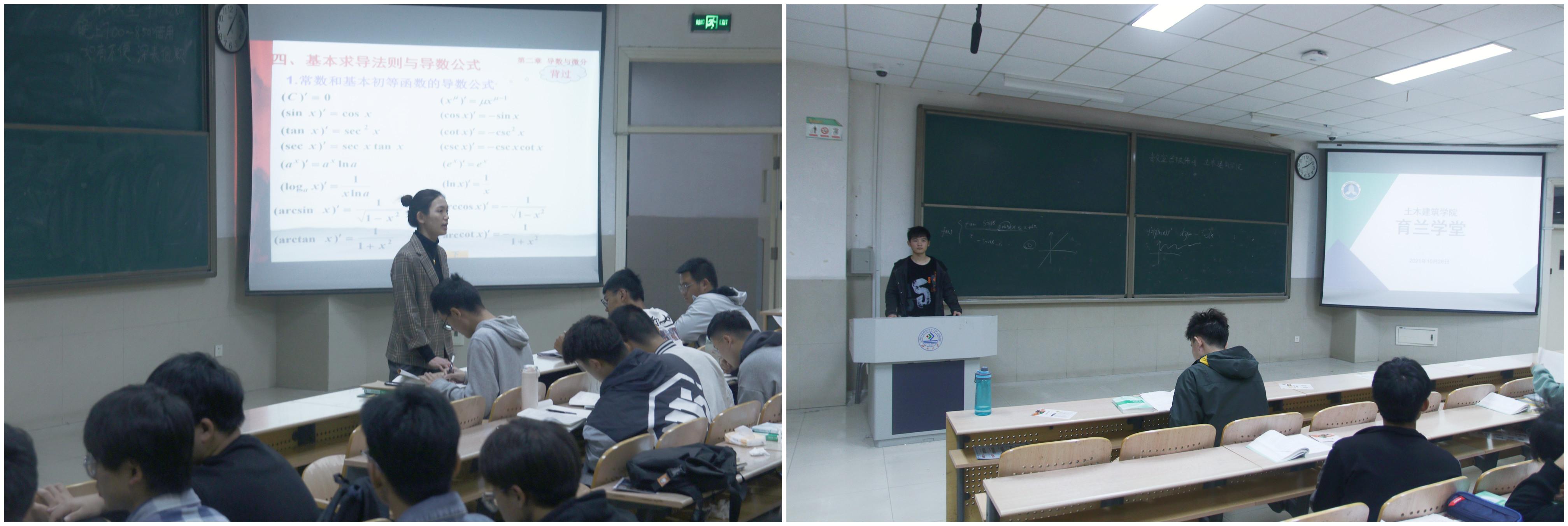 本学期“育兰学堂”于10月27日正式开课,教学内容为2021级土木类专业高等数学、线性代数和2020级土木工程业材料力学、概率论等课程。第一期“育兰学堂”授课小老师为靳子豪、邵冠坤,2021级学生到场听讲。课前授课小老师认真备课,准备充分;课上同学们仔细听讲、秩序井然;课后授课小老师通过布置课后习题的方式检测学生听讲情况,落实课堂效果。