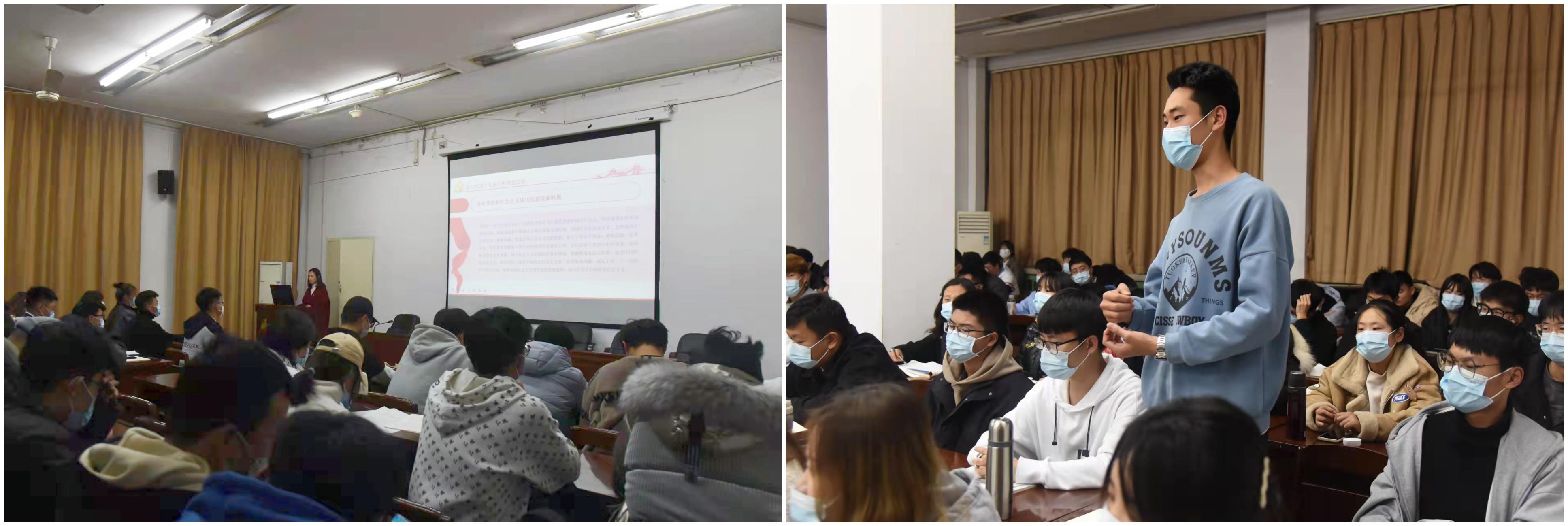 本次团干部培训采取线上线下相结合的方式。自2021年11月以来,全体成员通过线上方式学习建党100周年以来的红色故事,领悟党史精神,汲取奋进力量,书写学习心得。线下培训以两场讲座的形式展开。第一期讲座中,辅导员段继燕带领全体团干部深入学习习近平总书记在党的十九届六中全会上的重要讲话和全会精神,并从全会的时代背景、主要内容以及对青年的激励启示三个方面展开系统讲授,鼓励同学们充分结合专业特色,积极进取、夯实基础、守正创新。此外,p站杰出校友左准、王方勇、冯彦受邀做启迪演讲,他们结合自己本科期间学生干部成长经历和目前的团务工作等内容对到场的团干部进行经验分享和指导并答疑解惑,令同学们印象深刻,受益匪浅。第二期讲座由学生会主席团进行政治理论宣讲,学生组织相关部门、优秀团干部分享支部建设经验等,进一步提高了全体团干部的工作积极性和创造性。