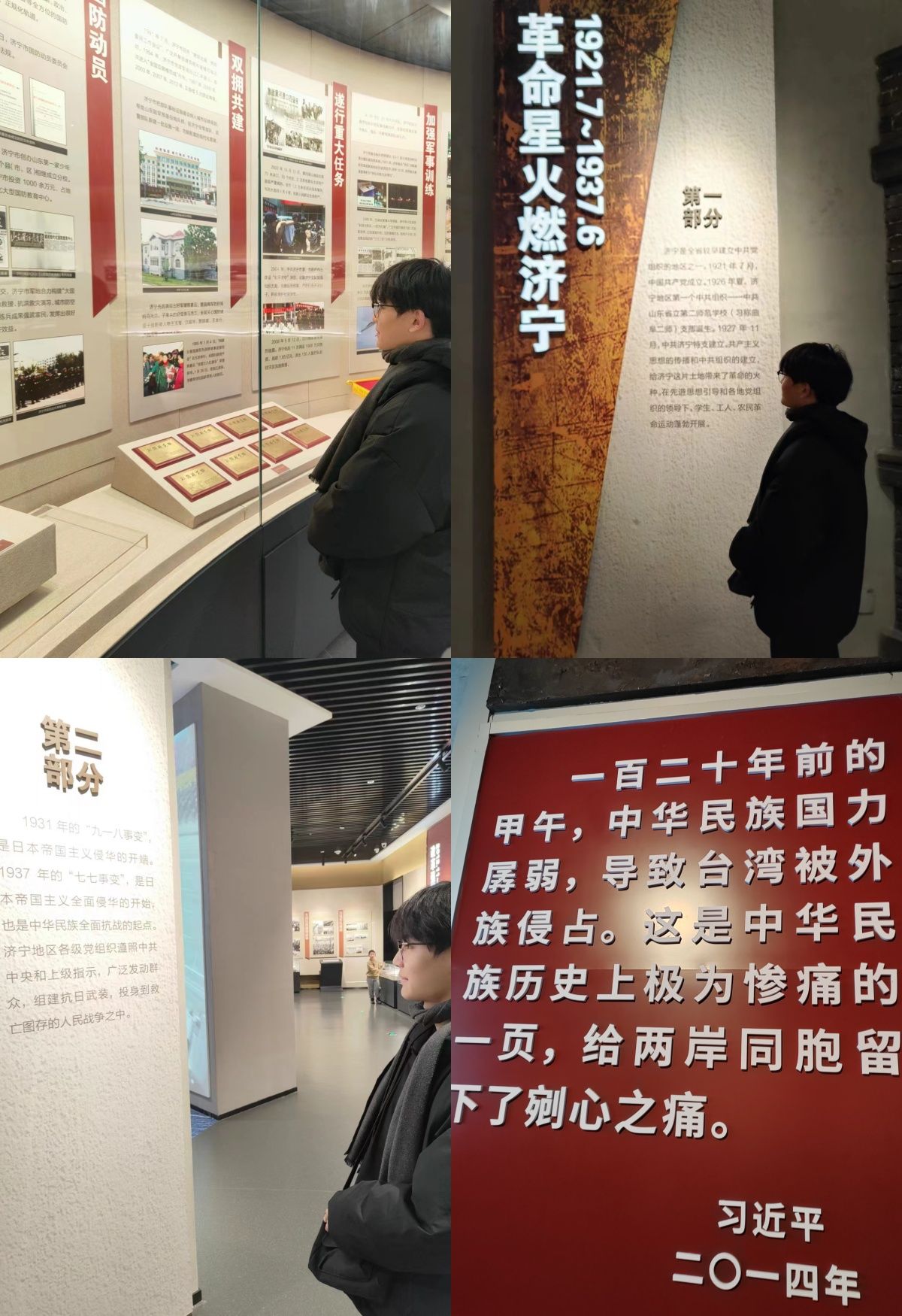 为传承红色精神,学习革命先辈们优秀事迹,2024年1月25日p站开展了“学思践悟,红脉追寻,红润人心”社会实践活动。学思践悟实践团队成员分别前往山东省济宁市革命军事馆、聊城市家风馆、威海市甲午战争纪念馆等革命宣传博物馆进行观摩学习。